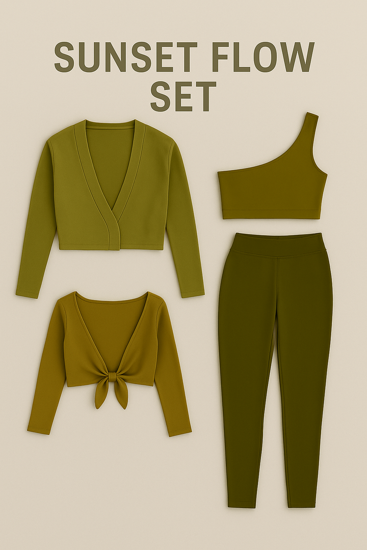 Price Range: $22 – $39 | Full Capsule: $79 Description:Move freely. Feel golden. Own the moment. The Sunset Flow Set blends effortless layering with sculpted support and sleek stretch β€” perfect...